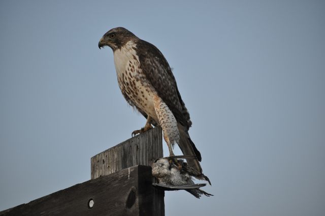 鳥を捕まえて食べる鷹(ボルサチカ湿地帯自然保護地)