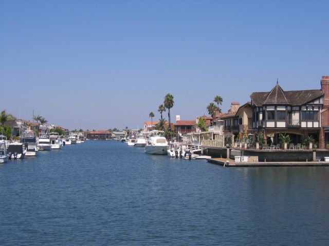 ビーチの反対側はハンティントンハーバーで、ここもまた高級ハーバーハウスが建ち並んでいる。